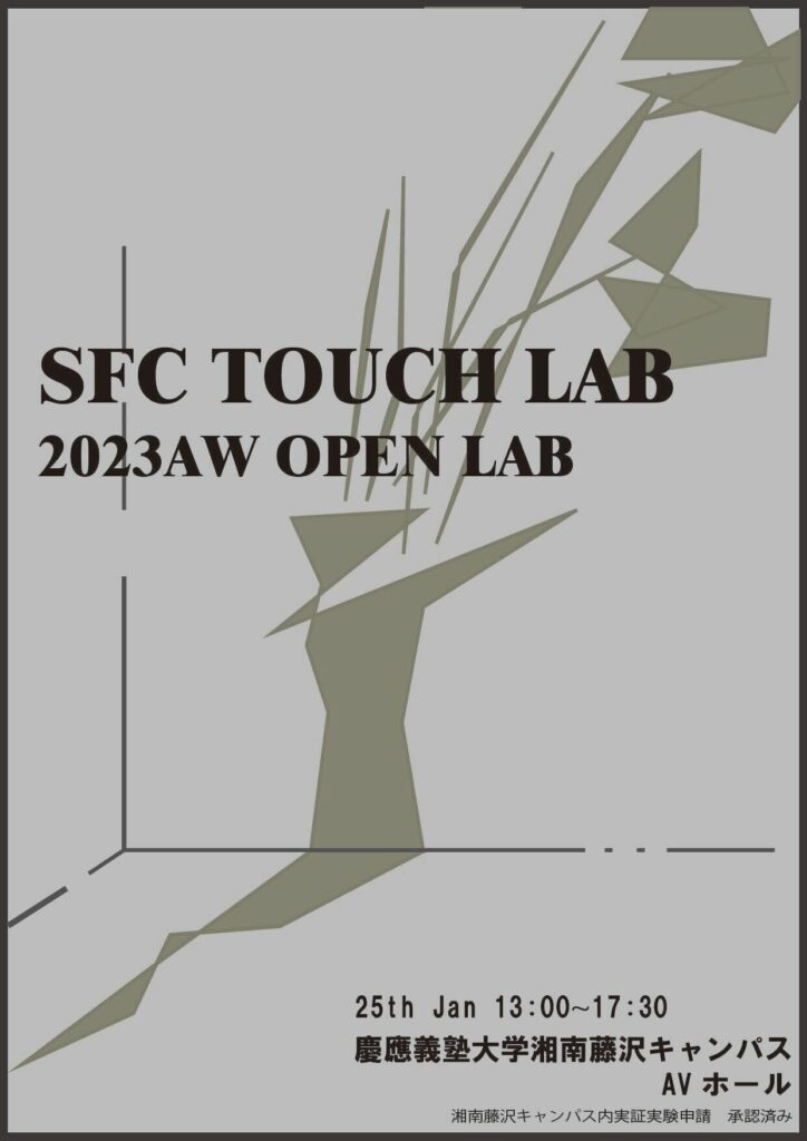 SFC TOUCH LAB Open Lab 2023 (2022AW) will be held on January 27th, 2023 (Friday,10:15am- 4 pm) . If you wish to attend, please register using the Google Form below.